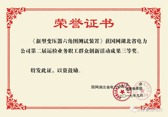 近日,國(guó)網(wǎng)湖北省電力公司第二屆運(yùn)檢業(yè)務(wù)職工群眾創(chuàng)新實(shí)踐活動(dòng)比賽圓滿(mǎn)落幕,我公司和國(guó)網(wǎng)孝感供電公司合作研發(fā)的《新型變壓器六角圖測(cè)試裝置》項(xiàng)目在此次活動(dòng)中榮獲三等獎(jiǎng)。