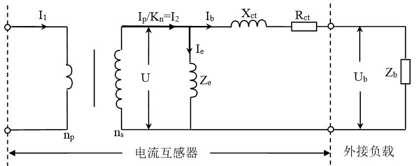 由上面電流互感器等值電路圖可知:電流互感器的一次電流I1變換到二次后分成兩部分,很小部分用于內(nèi)部損耗勵磁、磁損、渦損,另一部分流入二次回路,這個電流就是我們在外部測到的二次電流Ib,所以勵磁電流是CT存在誤差的原因。