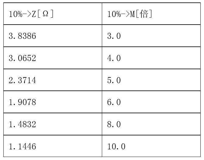 根據(jù)式1.1和1.2,最后可得到用最大短路電流倍數(shù)M和允許的二次回路中的最大負荷阻抗