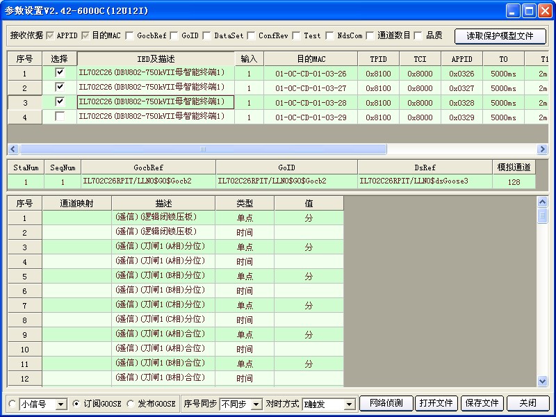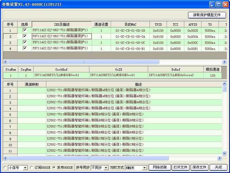 通過[列表2]設(shè)置參數(shù)StaNum、SeqNum、GocbRef、GoID、DsRef等