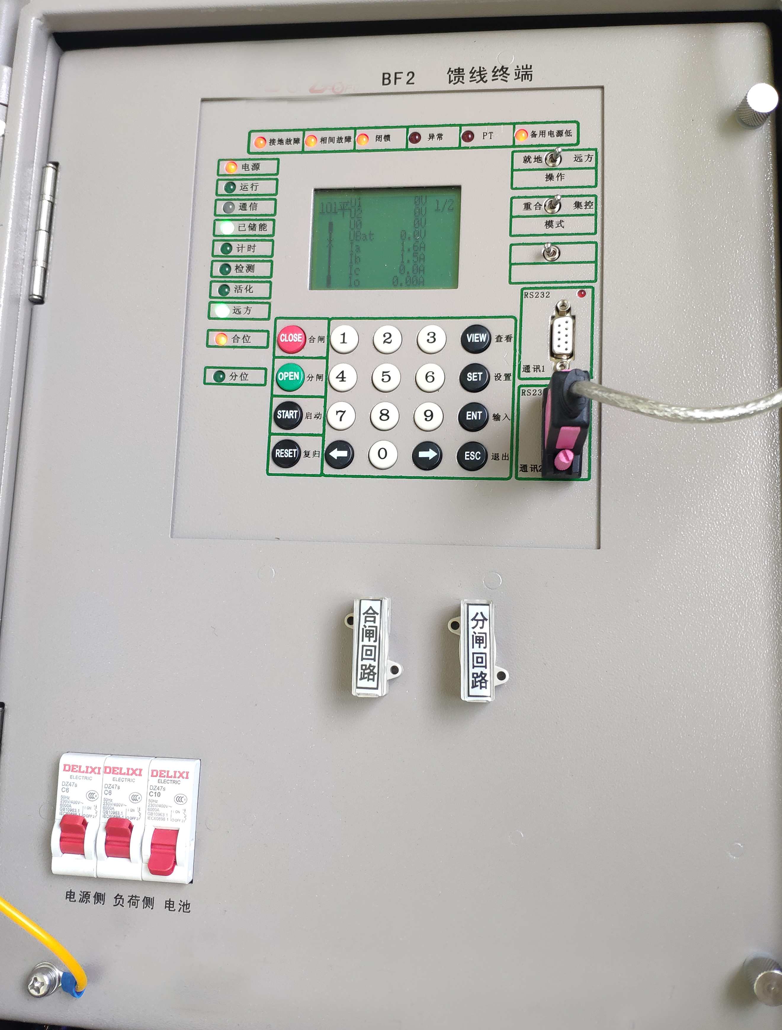 測試對象: BF2 饋線終端(標準三遙型FTU,現(xiàn)場無斷路器,用測試平臺采集跳閘出口開關(guān)量,故障信息通過遙信、遙測上傳至平臺模擬主站)
