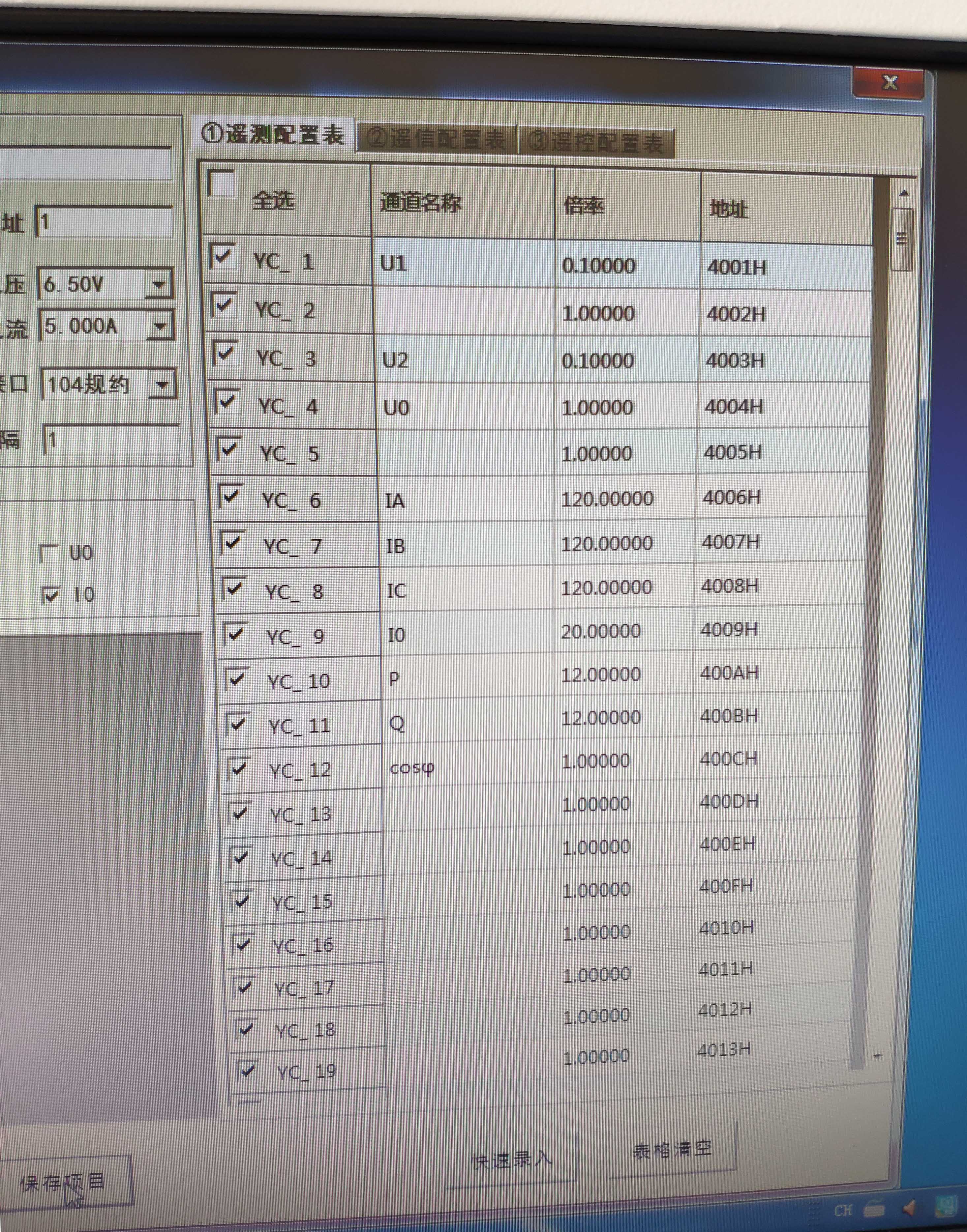 將FTU內(nèi)部設(shè)置完成的點號與測試平臺點號對應(yīng)。 測試儀的點號為標準十六進制碼(遙測的4001H代表遙測點號1,遙信點號0001H代表遙信點號1,遙控6001H代表遙控點號1)。