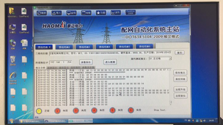 此次,武漢豪邁電力配合供電公司現(xiàn)場調(diào)試人員進行了電科院全檢項目的配電終端調(diào)試,一次操作同時測試6臺終端,且時間不超過20分鐘,大幅提高了測試效率。 供電公司工作人員對此次測試非常滿意,表示經(jīng)過測試后進一步降低了配電終端缺陷率,提升了配電自動化實用化水平,為后期供電的穩(wěn)定性、安全性、可靠性提供了有力保障。