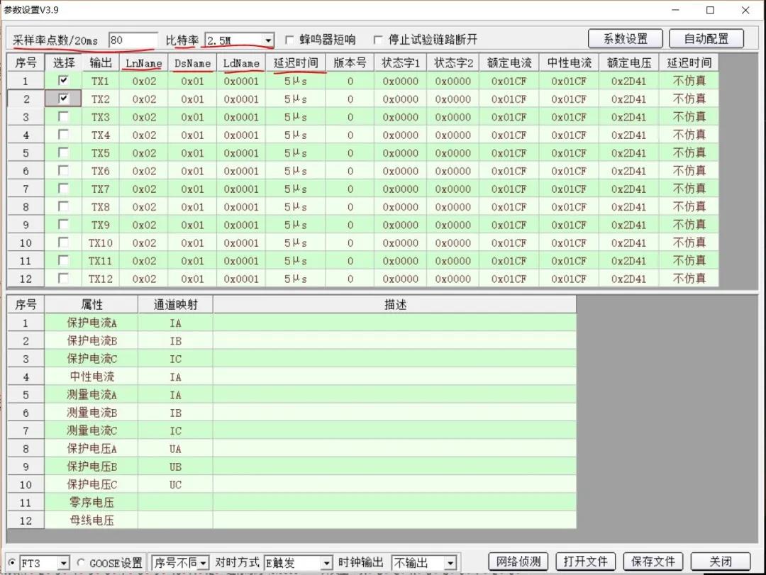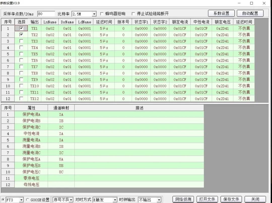 設置FT3通道2,勾選TX2,參數(shù)設置與TX1一致。