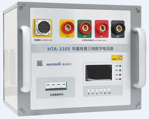 HTA-3300 向量檢查三相數(shù)字電流源三相交流最大輸出 300A ,輸出頻率 50Hz ,通過(guò)無(wú)線方式與無(wú)線相位基準(zhǔn)源同步,可三相同時(shí)完成繼電保護(hù)向量檢查。