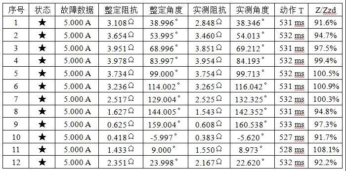 繼保之星-S60 自動記錄阻抗特性試驗結(jié)果數(shù)據(jù),如下表: