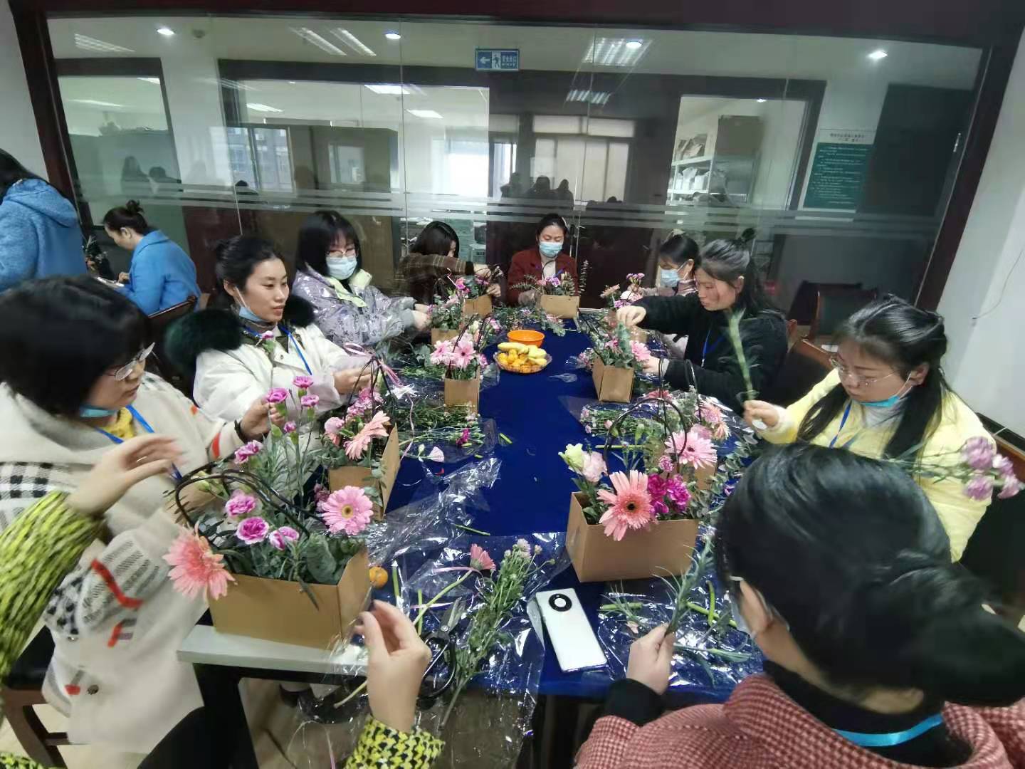 全體女性員工跟隨花藝?yán)蠋熍c鮮花來了一次浪漫邂逅,