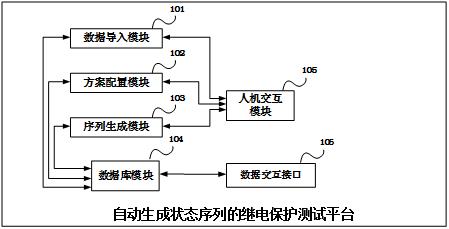 繼電保護測試狀態(tài)序列生成平臺主要包括數(shù)據(jù)導入模塊、方案配置模塊、序列生成模塊、數(shù)據(jù)庫、人機交互模塊、數(shù)據(jù)交互接口。