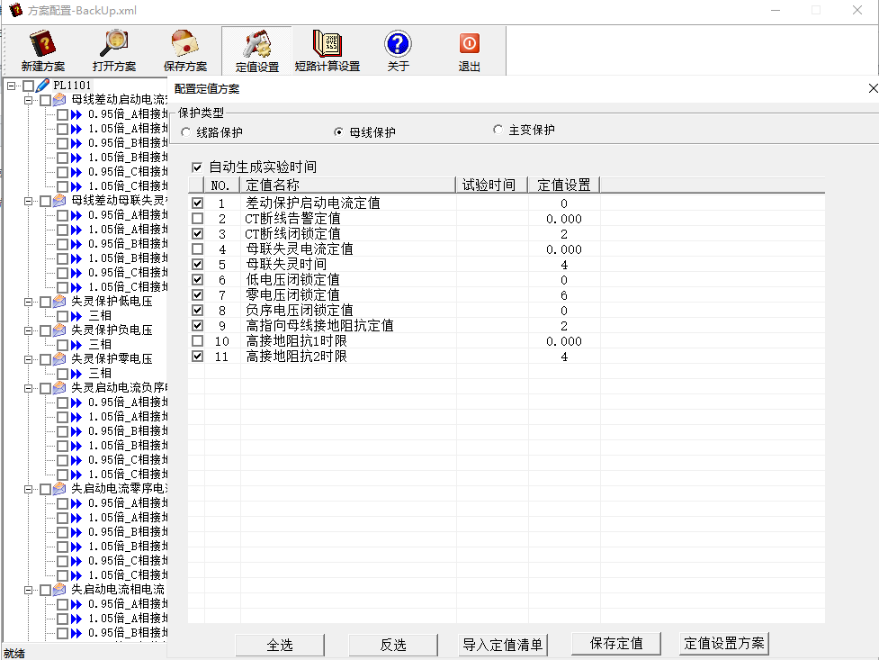 母線方案定值項設置:
