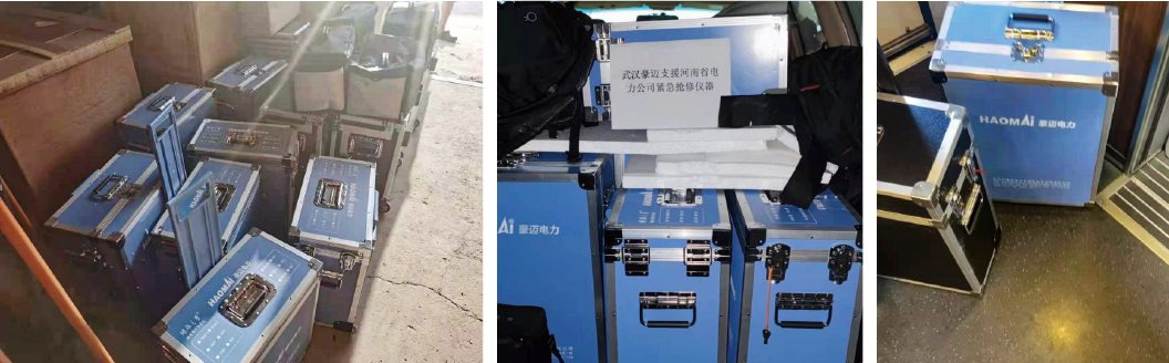 接到消息后,武漢豪邁即刻做出響應(yīng),啟動(dòng)應(yīng)急備貨預(yù)案,加班加點(diǎn)安排備貨,連夜安排專人專車將第一批電力測(cè)試設(shè)備送往鄭州。