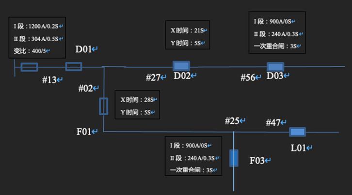 現(xiàn)場選取D01模擬變電站出線開關(guān),D02和F01三個(gè)點(diǎn)進(jìn)行測試。