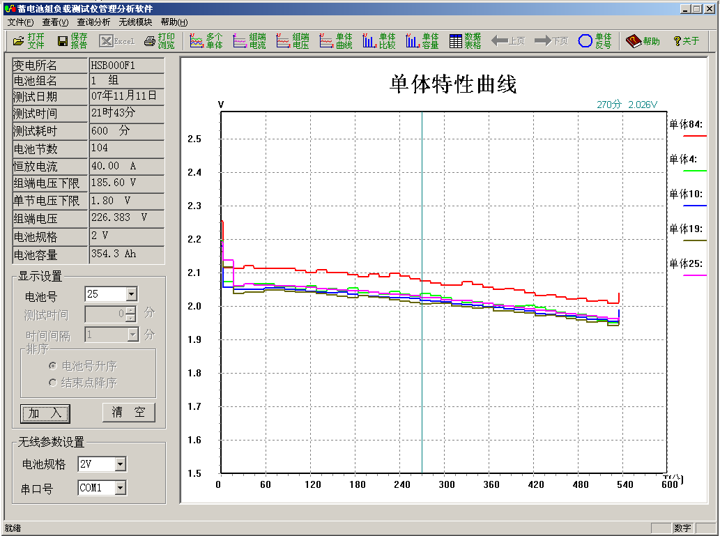 蓄電池的充放電試驗可對電池內部進行活化,充放電后蓄電池組的電壓更加均衡,搭配蓄電池單體無線檢測模塊可在放電和充電過程中用無線通信方式監(jiān)測每節(jié)電池的電壓和放電曲線,并可在任意某節(jié)電池低于下限時自動報警并暫停放電以及繼續(xù)放電。