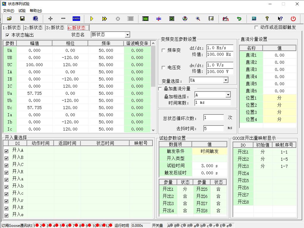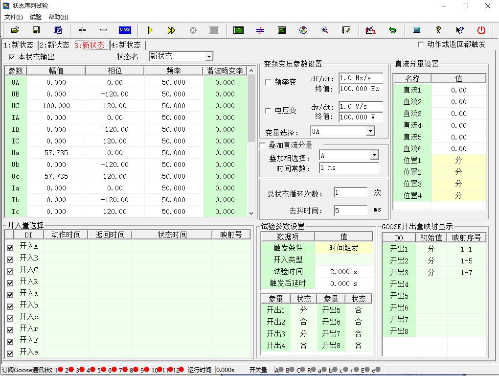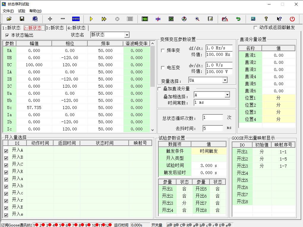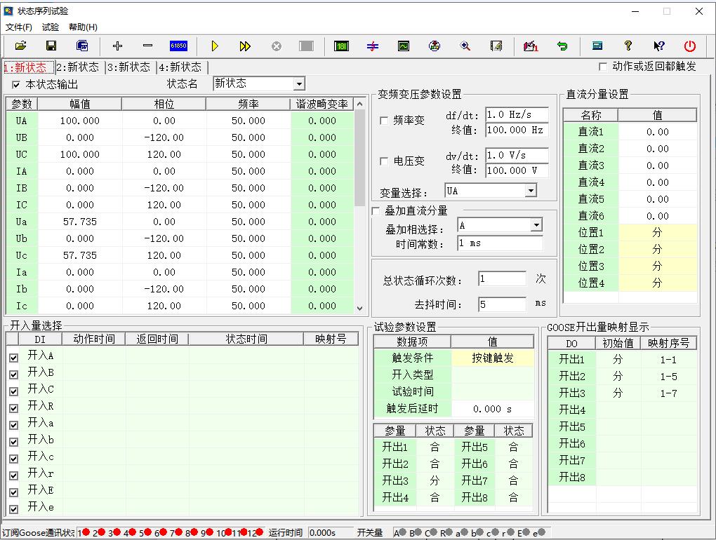 接線及裝置定值整定完成后設(shè)置繼保之星-7000 的狀態(tài)序列。