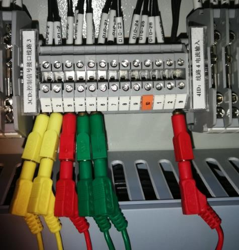 配電終端與開關(guān)柜的控制連線在配電終端側(cè)通過端子排連接。 首先拔出配電終端一次側(cè)線,使用絕緣膠帶包裹裸露端子,確保端子不會觸碰短路引起開關(guān)柜誤動作,同時對拔出的連線粘貼編號標簽, 防止恢復(fù)接線時接錯端子。