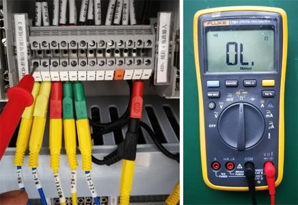 4)如果此時聽到萬用表發(fā)出“滴——”的聲音,表示端子接線正常,否則需要查看電纜接線,排除問題。