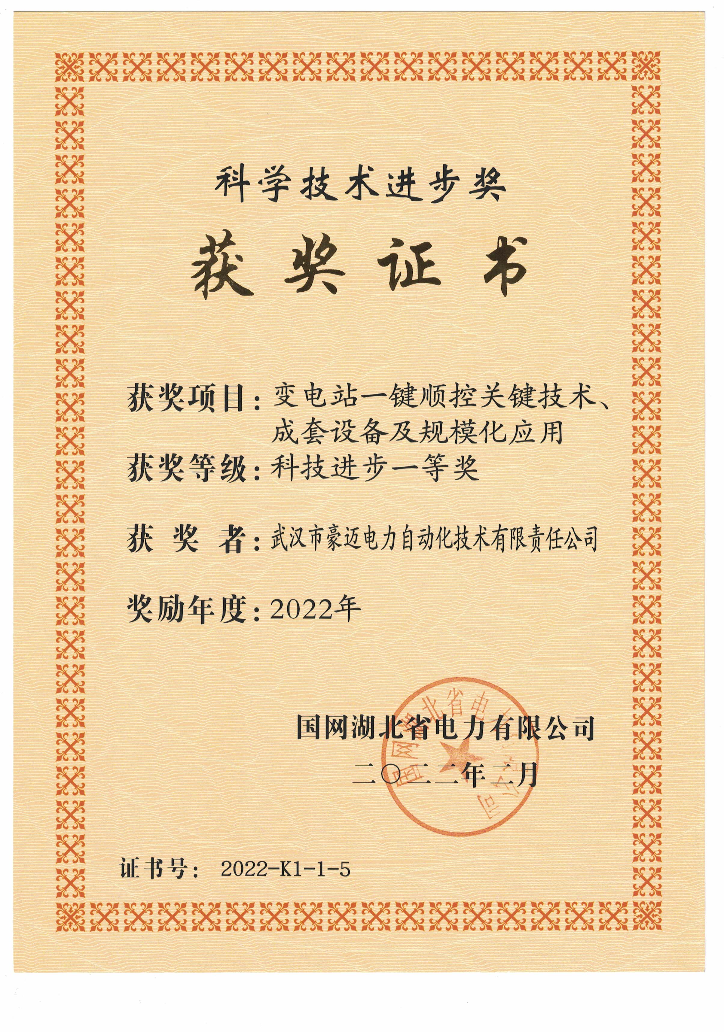 近日,武漢豪邁參與的創(chuàng)新項(xiàng)目《變電站一鍵順控關(guān)鍵技術(shù)、成套設(shè)備及規(guī)?;瘧?yīng)用》經(jīng)國網(wǎng)湖北省電力有限公司評審,榮獲國網(wǎng)湖北省電力科技進(jìn)步一等獎(jiǎng)。