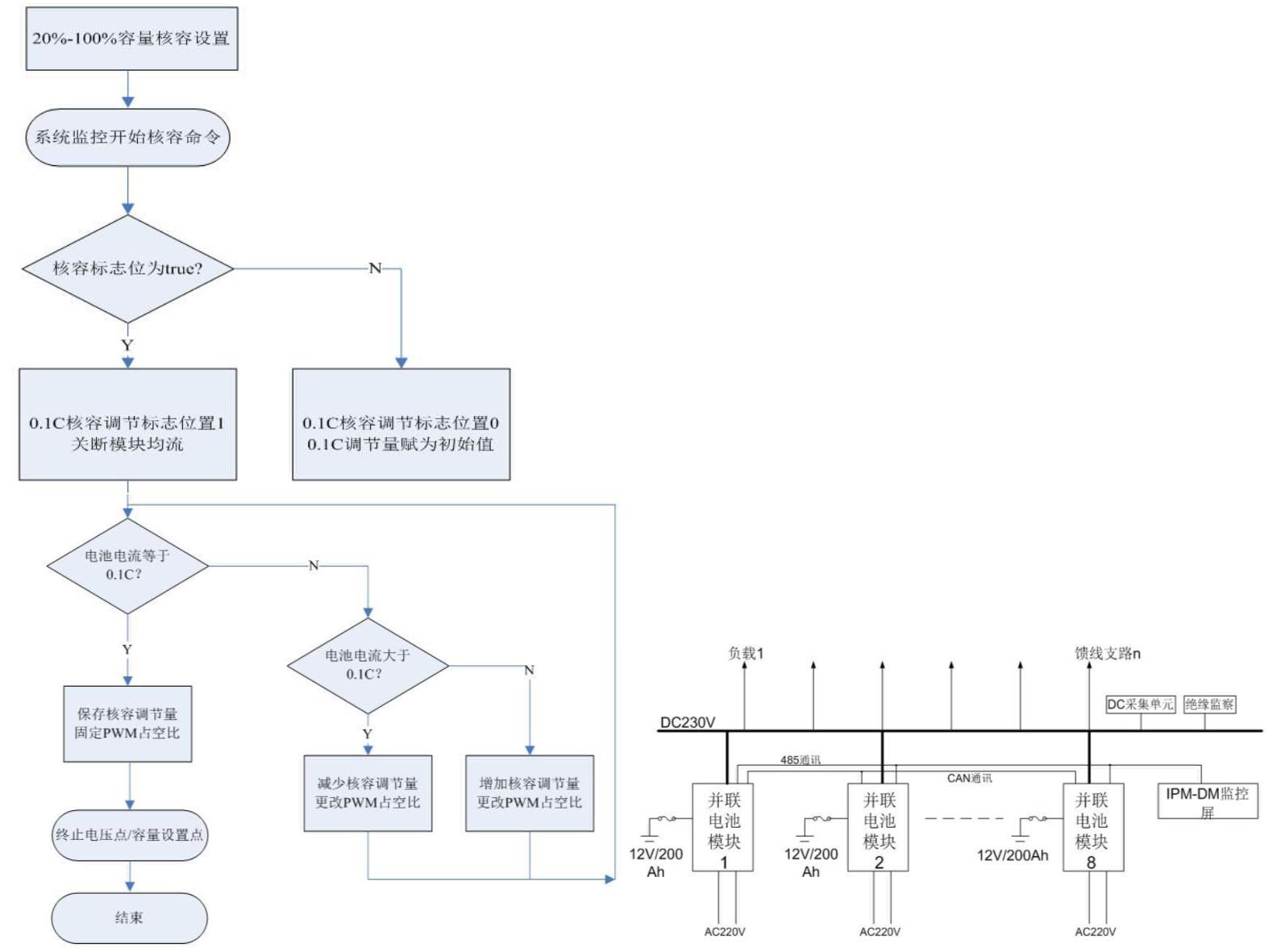 并 聯(lián)型直流電源系統(tǒng)實現(xiàn)自動在線核容需要同時滿足以下條件:
