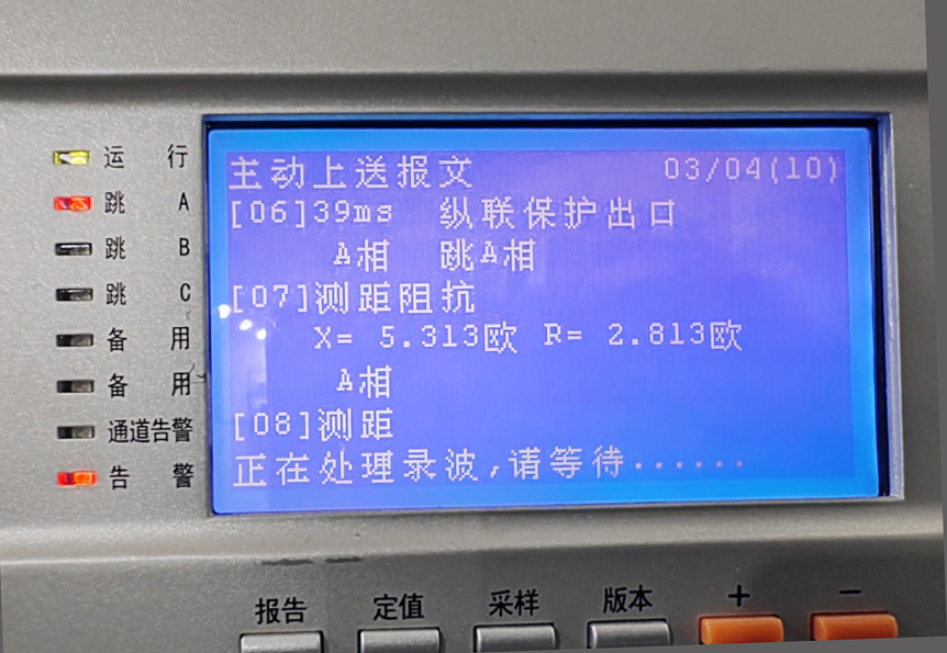 點(diǎn)擊開始屏幕的“運(yùn)行”、“確認(rèn)”鍵,繼保之星-Z70 開始輸出,先輸出空載狀態(tài),然后再輸出故障狀態(tài),直到保護(hù)可靠跳閘,開入接點(diǎn)采集到動(dòng)作時(shí)間,繼保之星-Z70 自動(dòng)繼續(xù)后面的試驗(yàn)直至完成所有保護(hù)試驗(yàn)并結(jié)束試驗(yàn),根據(jù)提示選擇是否保存試驗(yàn)結(jié)果。
