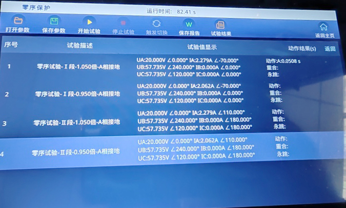 △  自動(dòng)記錄零序保護(hù)試驗(yàn)結(jié)果