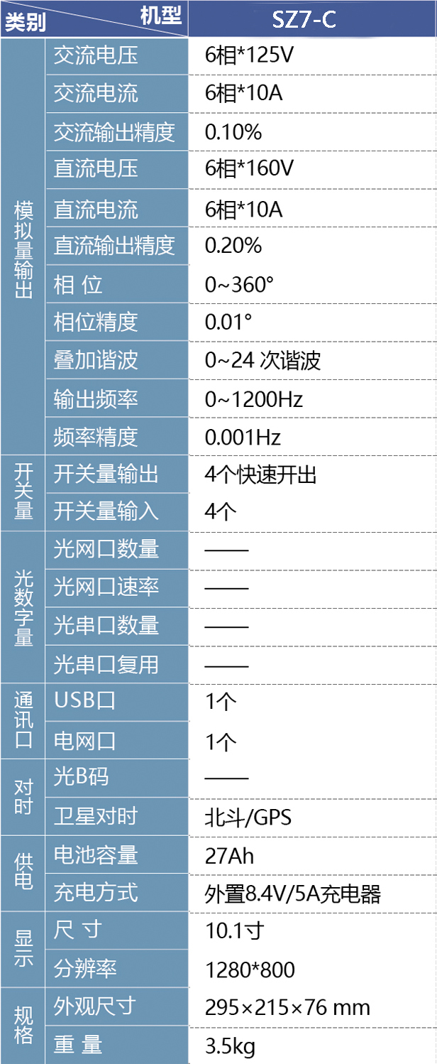 SZ7-C 二次儀表是具備6相電壓6相電流高精度輸出,可輸出高精度可控電流與電壓,主要用于變電站二次系統(tǒng)保護(hù)、測(cè)控、合并單元、智能終端等設(shè)備功能性能測(cè)試。該設(shè)備支持北斗、GPS、B碼對(duì)時(shí),多機(jī)同步輸出。