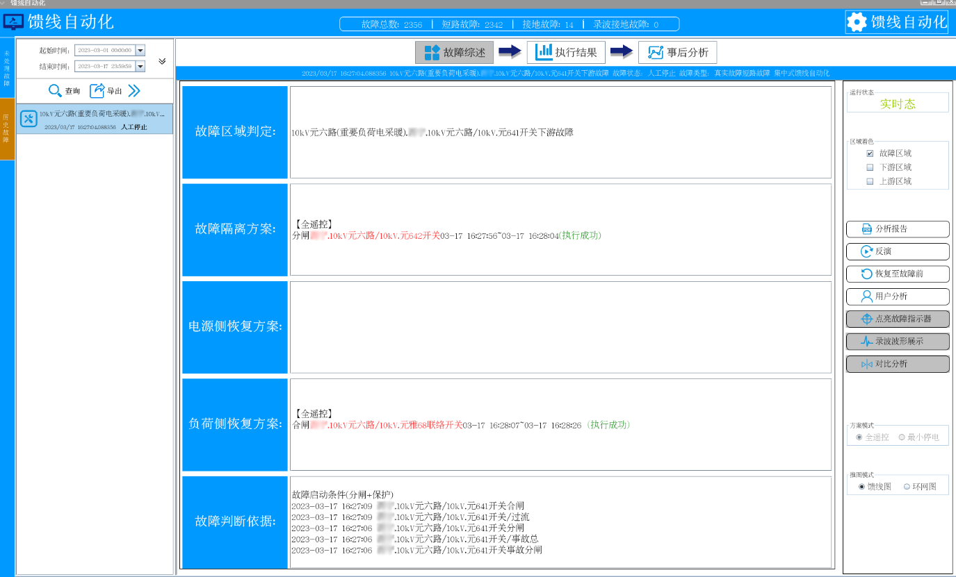 6)主站廠家、局方、武漢豪邁測試工程師通過告警窗核查主站系統(tǒng)采集故障信號是否完整并及時,故障分析后彈出的故障隔離策略是否正確。