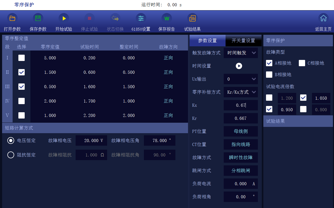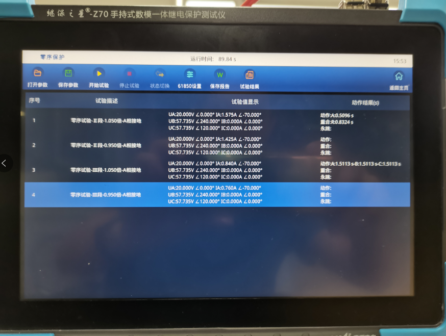以上為A相接地零序II和III段的試驗方法,其他相故障試驗方法相同。