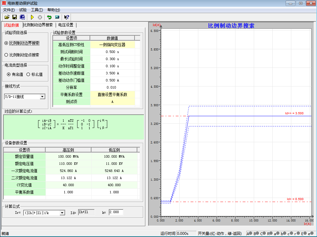 進入電鐵差動保護曲線搜索 專 用試驗界面。