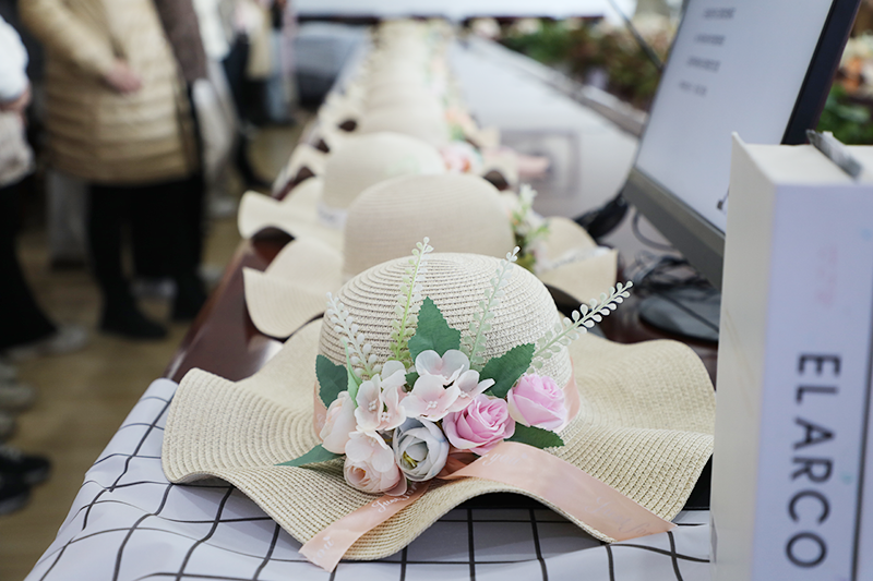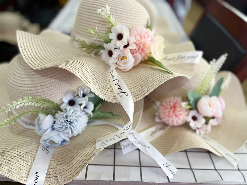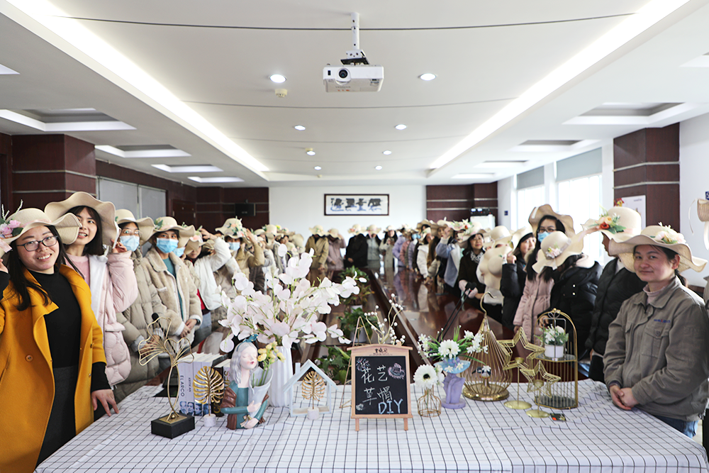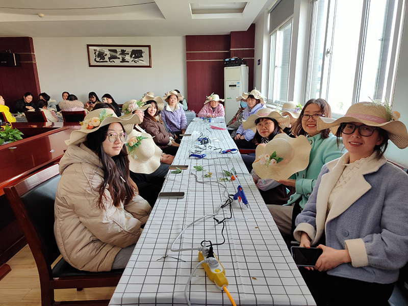女員工們精心構(gòu)思,盡情發(fā)揮想象力、創(chuàng)造力,認(rèn)真挑選每一份絲帶和絹花,根據(jù)不同的色彩、形狀將其搭配在一起,固定在草帽上,色彩繽紛,錯落有致?;顒蝇F(xiàn)場氣氛熱烈,大家一邊制作,一邊交流心得,互相鼓勵,互相學(xué)習(xí)。經(jīng)過一番努力,草編與花藝結(jié)合,一頂頂普普通通的草帽變成了一件件具有藝術(shù)感和層次感的精美作品,有的款式簡單大方,有的華麗炫彩,個個獨具匠心,展現(xiàn)出了不同的個性和風(fēng)采。