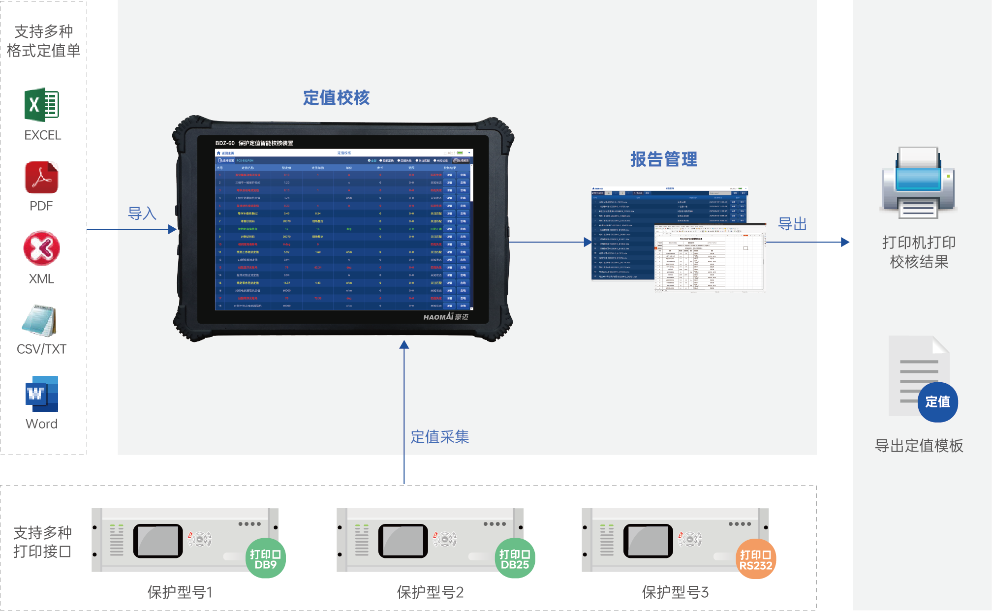 測試設(shè)備: BDZ-60 保護(hù)定值智能校核裝置