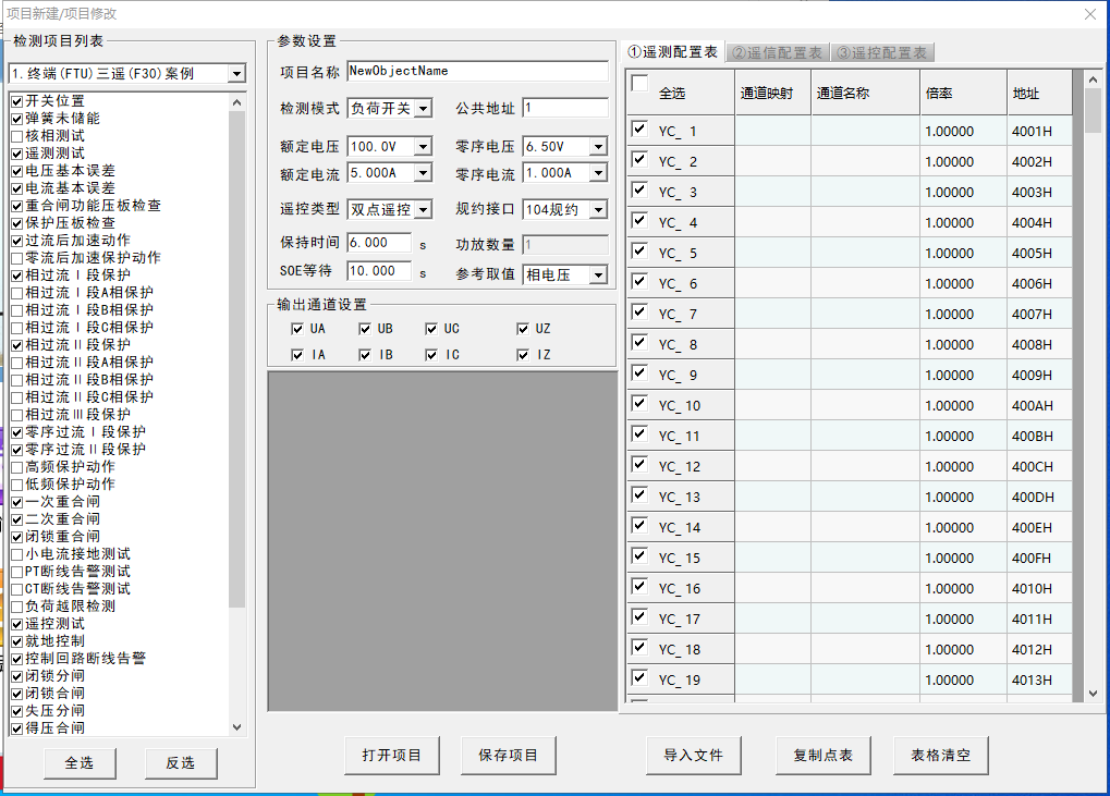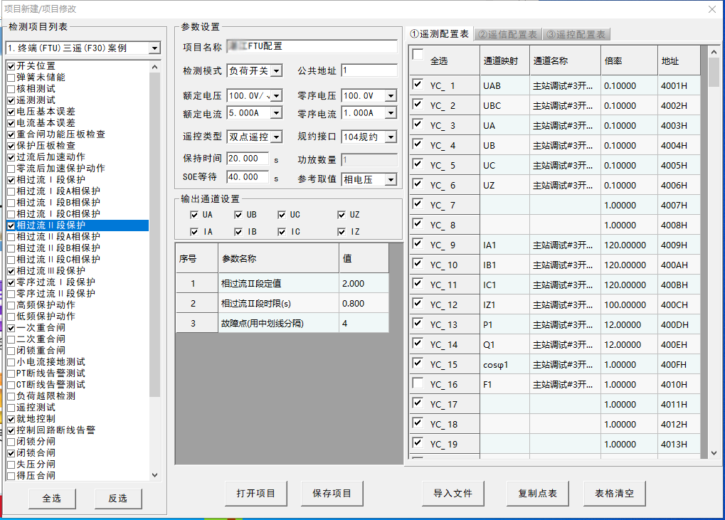 點(diǎn)擊導(dǎo)入文件,導(dǎo)入對(duì)應(yīng)的終端三遙點(diǎn)表,選擇需要進(jìn)行測(cè)試的項(xiàng)目,可對(duì)測(cè)試內(nèi)容進(jìn)行修改與編輯。