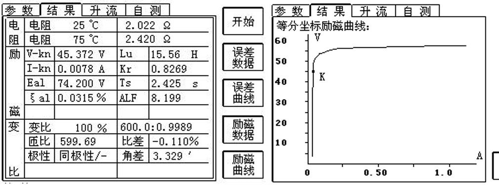 此次使用CTP-220 互感器測試儀完成所有互感器綜合特性測試,該款測試儀采用最新方波法技術(shù),測試時間較傳統(tǒng)測試儀大約縮短50%,可完成保護類、計量類、TP類等各類型CT的勵磁特性、變比、極性、二次繞組電阻、二次負荷、比差以及角差等測試,可進行各類PT電磁單元的特性測試,能應(yīng)對拐點高達30kV的CT測試,接線簡單,一鍵測試,高效穩(wěn)定。 設(shè)備自動給出拐點電壓/電流、10%(5%)誤差曲線、準確限值系數(shù)(ALF)、儀表保安系數(shù)(FS)、二次時間常數(shù)(Ts)、剩磁系數(shù)(Kr)、飽和及不飽和電感等參數(shù),軟件自動進行數(shù)據(jù)分析,并生成測試報告。