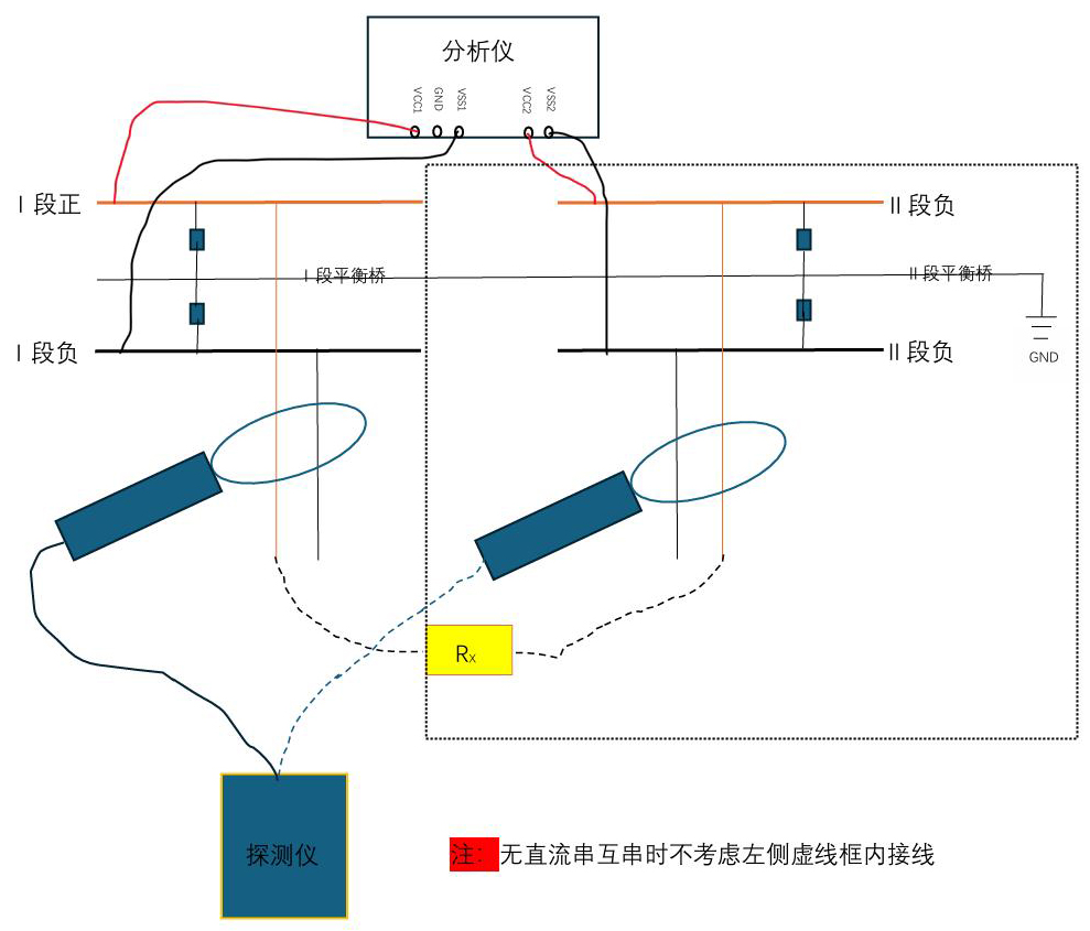 6、探測儀與分析儀之間采用無線通信,通信成功后,只要不關(guān)閉探測儀電源開關(guān),探測儀會記錄通信信息,之后不需要實時通信,探測儀可在直流系統(tǒng)其他位置進(jìn)行測試,不需要變換分析儀的位置。