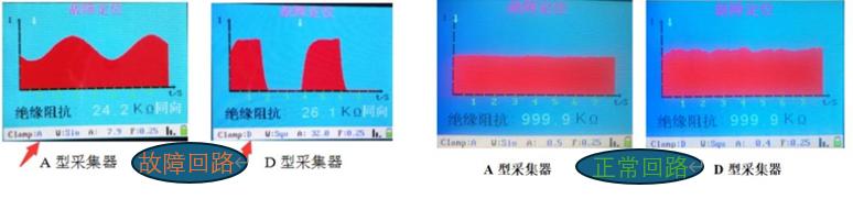 3、分析儀測試完成,如果顯示被測系統(tǒng)存在絕緣故障,使用探測儀的絕緣分析功能測試分析儀地線,如果探測儀顯示兩個周期的方波,則說明分析儀與探測儀工作正常,可以用探測儀測試各個饋線。