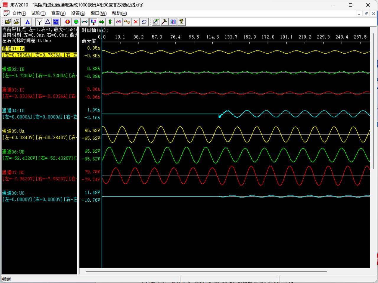 2 ) 波形打開與顯示:選擇需查看的 .cfg 文件并打開,儀器屏幕將顯示該波形的所有電壓、電流波形,同時(shí)標(biāo)注各通道名稱(如 UA 、 UB 、 UC 、 IA 、 IB 、IC 等) 。