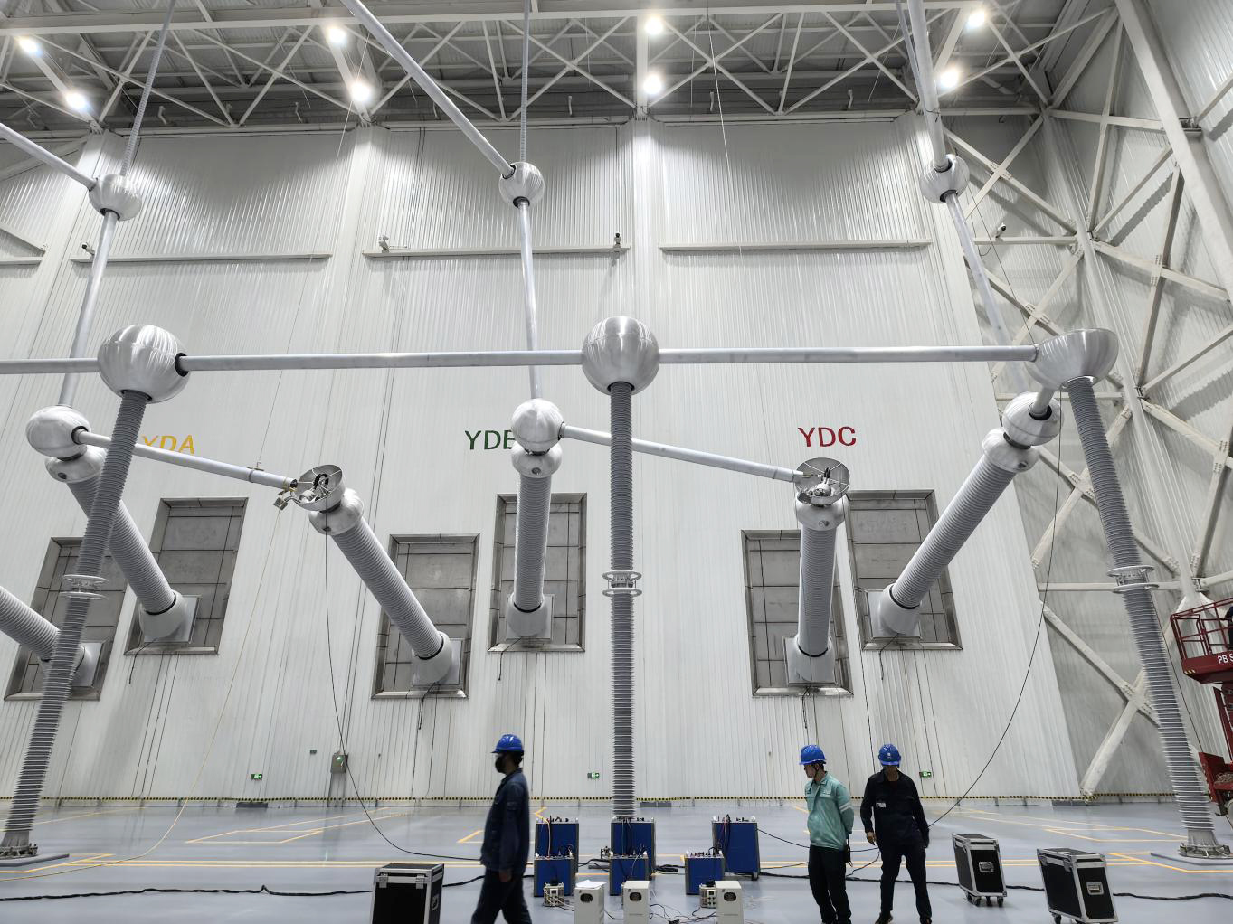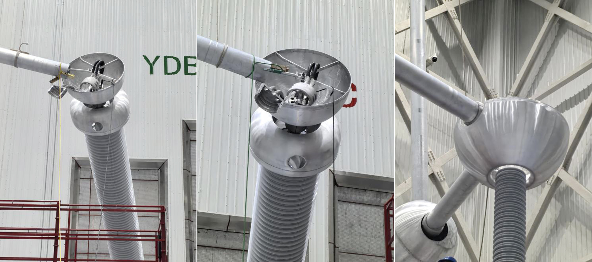 極高端閥廳 YD方式注流80A,網(wǎng)側(cè)感應(yīng)電流30A 。 YD方式中閥側(cè)三角形接線,B相尾端與A相首端相連,B相首端與C相尾端相連,C相首端與A相尾端相連,故解開Bn相球體、解開Cn相球體、解開C相球體,Bn相球體處, 裝置 A相線夾閥側(cè)A相首端,Bn相夾B相尾端,依次類推。