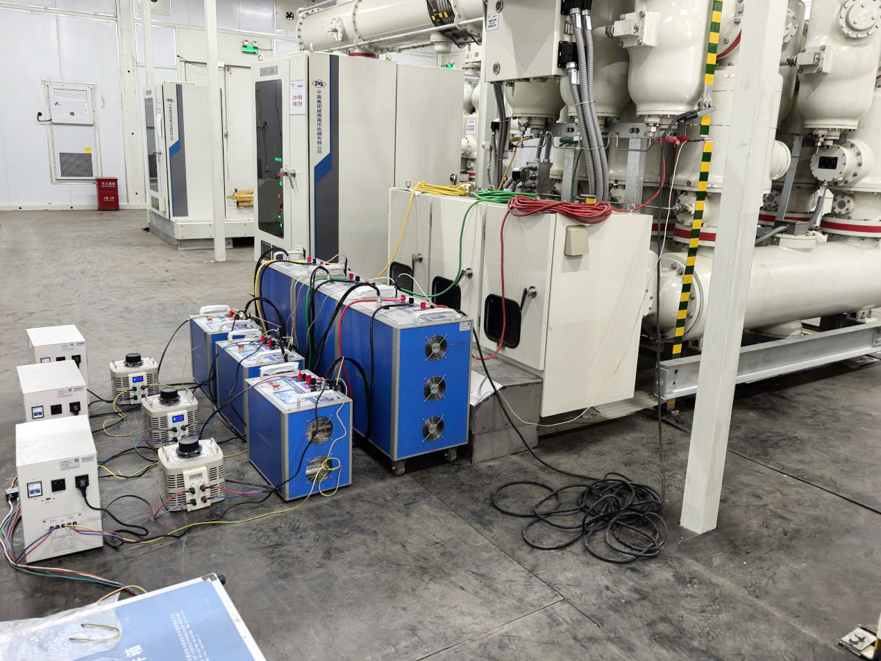 因此本次選用電壓電流同源施加方案,使用 HTB-8000 負荷模擬向量檢查裝置進行新能源場站投運前負荷模擬式繼電保護向量檢查試驗,完成風(fēng)電場的高低壓側(cè)和主變向量檢查。該裝置采用串補和并補電容新方法完成變壓器和間隔通流試驗,多模塊組合設(shè)計,大幅減少體積和重量,降低對工作電源功率的要求,適用于各電壓等級廠站以及敞開式主接線結(jié)構(gòu)和 GIS 結(jié)構(gòu)變電站等。