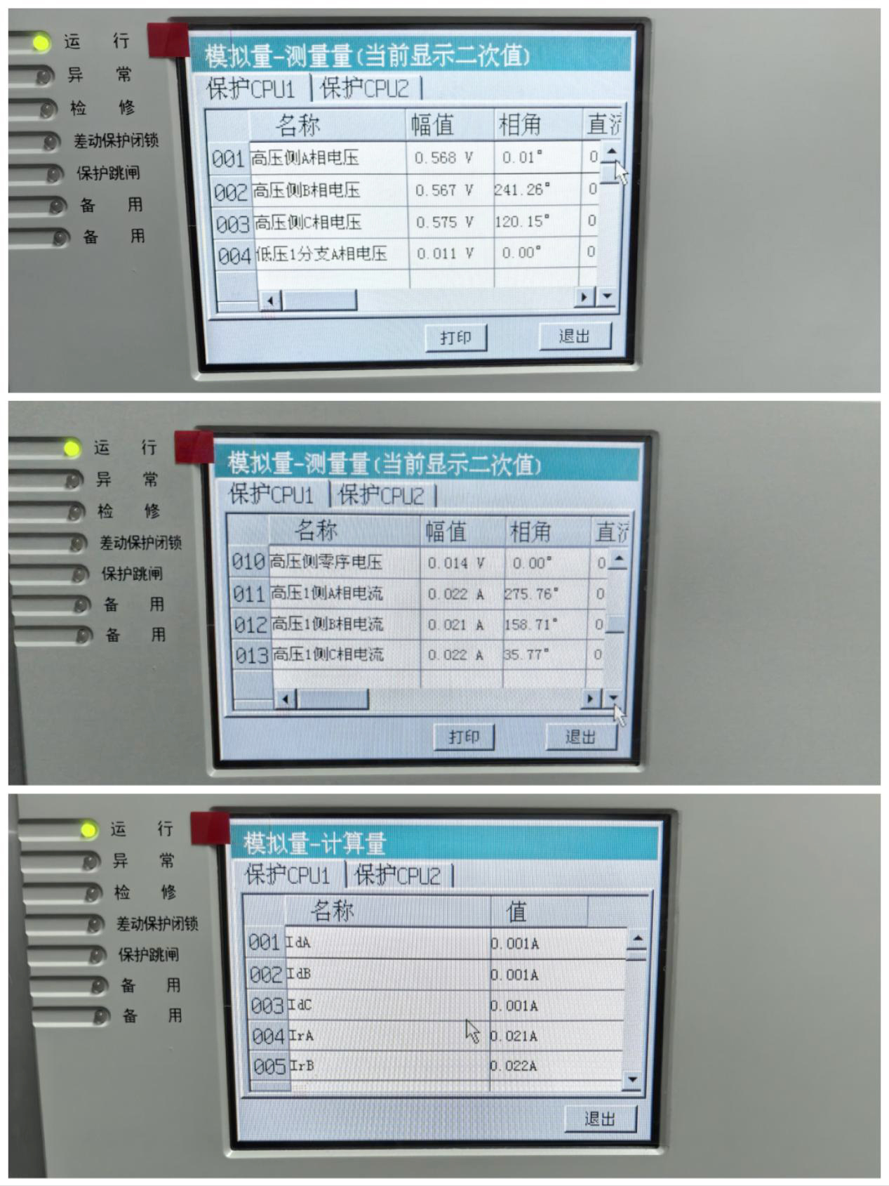 同理主變保護從母線 P1 流過 P2 至主變,主變高壓側(cè)電流角度約為 0.22A ∠ 270 °( -90 °)正序,主變保護差流計算值為 0 。由此可得,高壓側(cè)線路保護一二次接線正確。主變保護電壓電流角度、差流等符合預(yù)期結(jié)果。