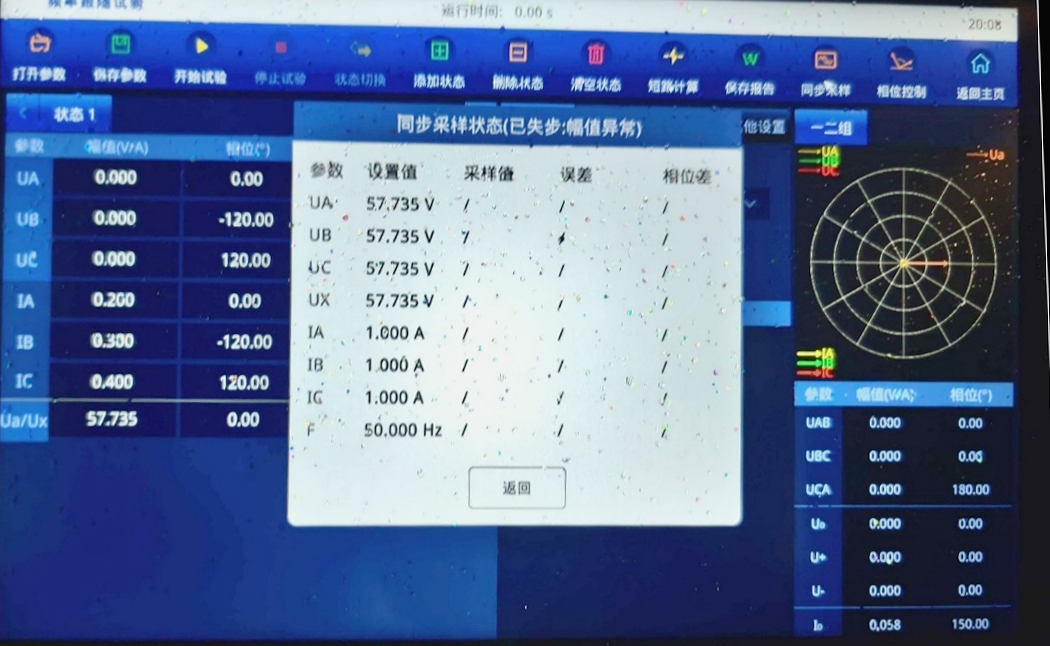 4 ) 數(shù)據(jù)記錄:讀取并記錄保護(hù)裝置顯示的電壓、電流幅值與相位數(shù)據(jù)。